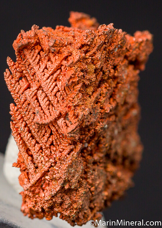 Diamond-shaped mass of crystallized Copper that appears to have grown in a thin seam. Criss-crossing crystals of Copper are evident along the sides. Interesting Copper out of an old colleciton.