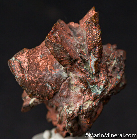 Floater cluster of Copper with large, very well formed crystals. This is a replacement of Copper after an Azurite cluster and has unusually well separated, distinct crystals.
