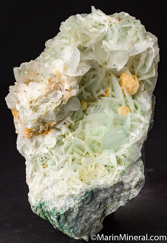 Large specimen of Ankerite, a mineral similar to Dolomite, on green Mariposite. Quality large specimen with great crystals to over 2cm. Mariposite is a dolomitic marble included by chromium rich mica found in the foothills of California and was often an indicator of nearby Gold and gives this specimen the green coloration. This is a good sized, quality example (the largest I've ever had) and valued at $350.