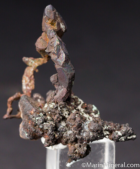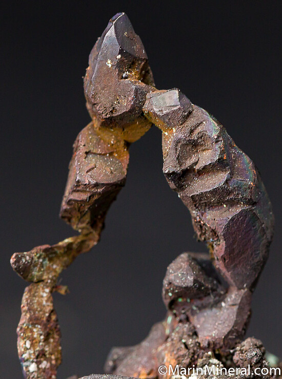 Copper crystals with a dark, almost black patina. The best crystals rise up forming a complete arch.