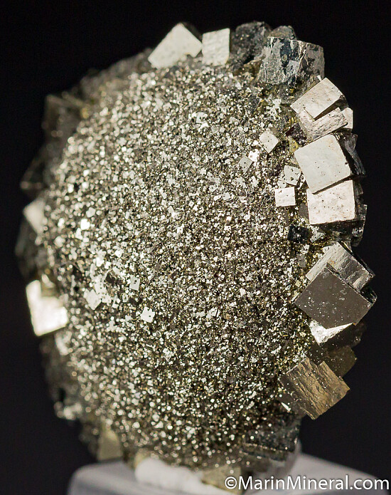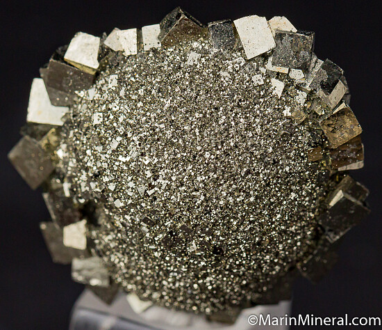 Here's a fun little Pyrite specimen found at the Dallas airport (Love Field). A sahllow circular mound of fine crystals surrounded by a ring of larger Pyrite crystals.