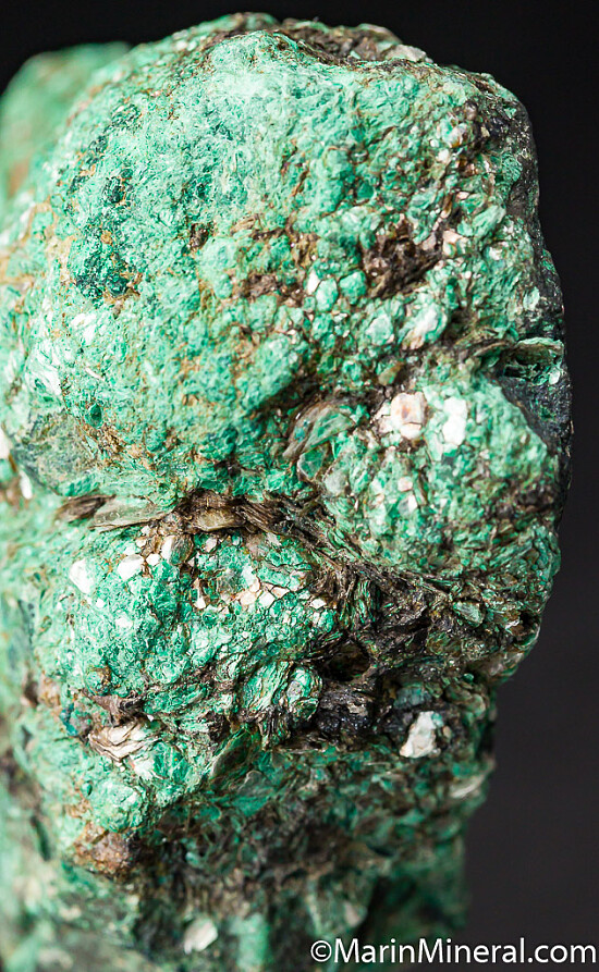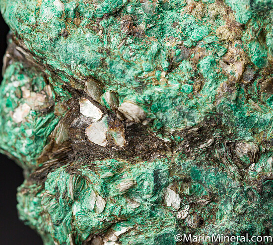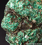 Mass of green Malachite and Mica with areas of grey Bismuthinite.