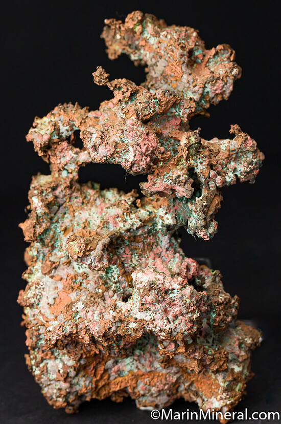 Large hackly mass of Copper from the famous Copper mining area of Michigan. Large and impressive Copper that can be displayed from a variety of angles. There's alot of Copper in this one - weighs about 2.5 pounds. The nice thing about this piece, besides it's size, is that alot of the weight is towards the bottom and it stands up on it's own perfectly for display and is very stable. Valued at $600.