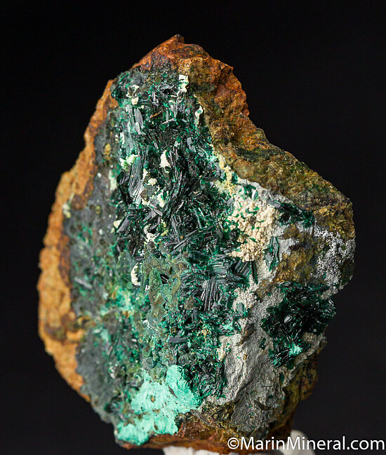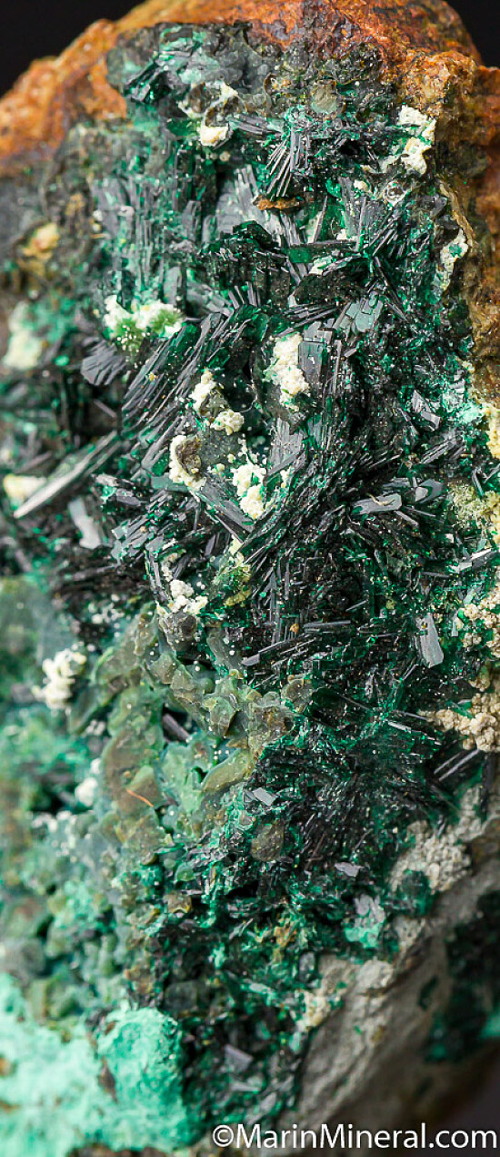 Lustrous forest green crystals of Atacamite with Chrysocolla and white Halloysite. Highly mineralized example with good coverage of crystals over matrix. These are once abundant classics now hard to find.
