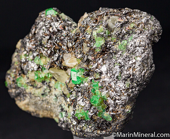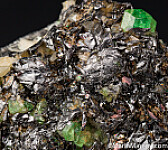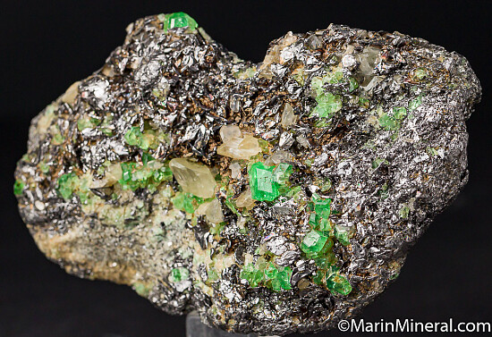 Large display matrix Tsavorite specimen, which are hard to come by. This specimen has better than average, large Graphite crystals, white Diopside crystals, and Tsavorites crystals to 9mm. The Tsavorite have great green color (not pale!), and are gemmy.