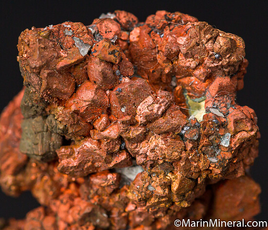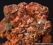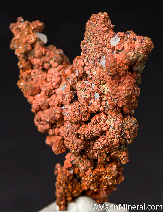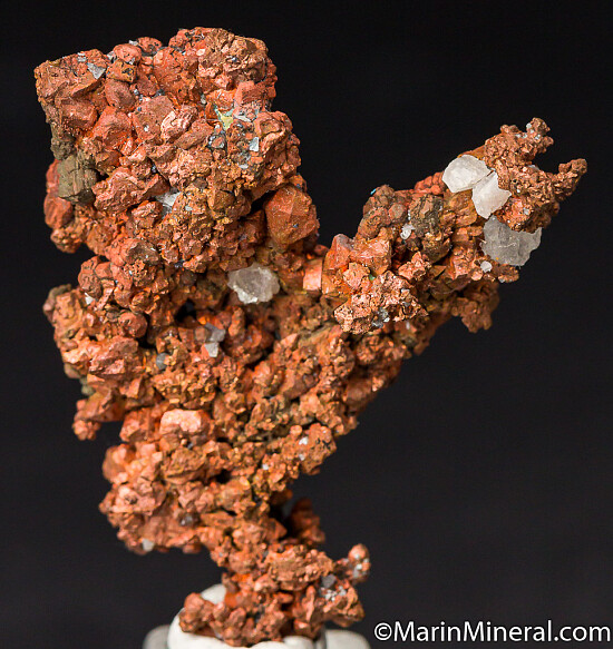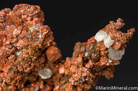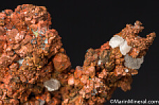 Copper crystals intergrown with small amounts of Calcite. Good crystals and can be displayed from either side.