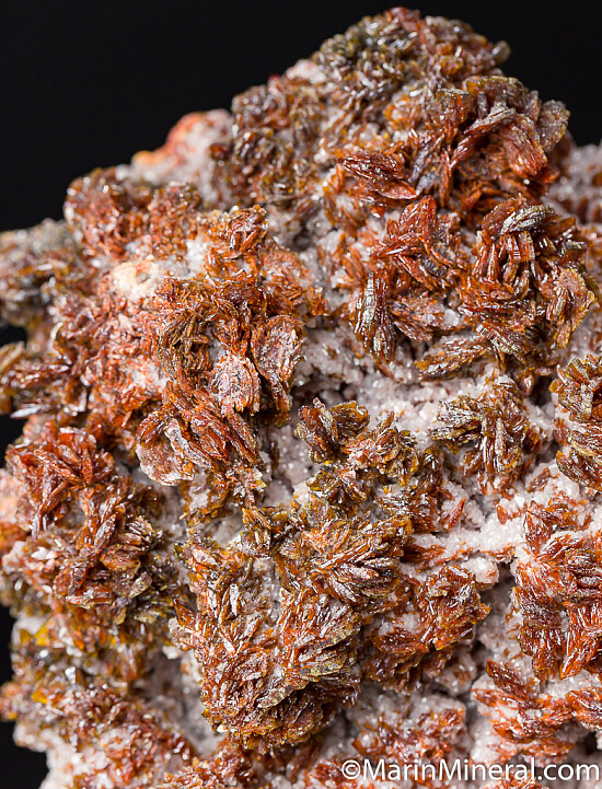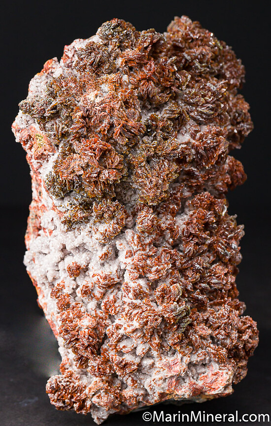 Large specimen of Descloizite crystals on matrix, one of the largest I've ever seen. The Desclozite has a light reddish brown color that is set off nicely by small white Calcite or Dolomite crystals that are present down close to the matrix giving it a certain overall 'brightness'. Very minor damage, especially for an old specimen of this size.
