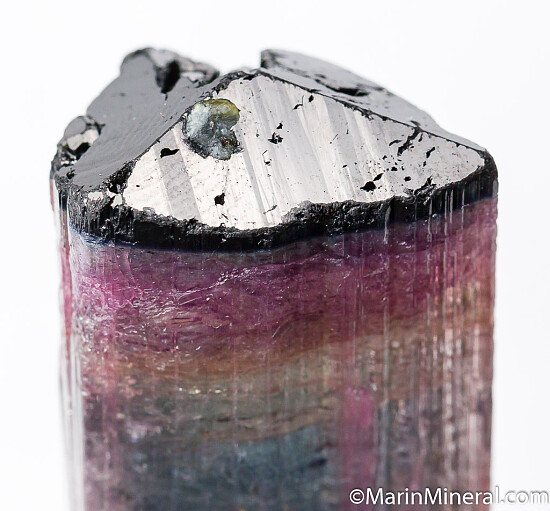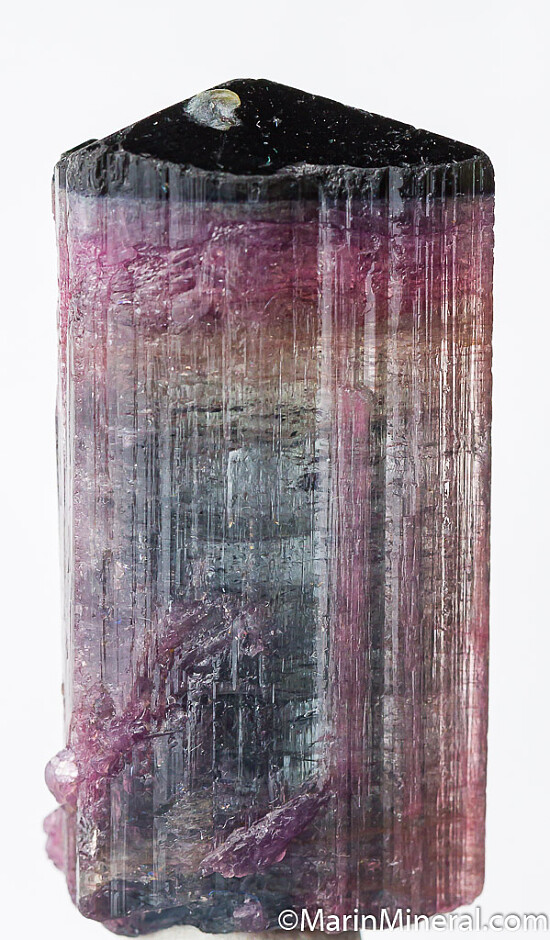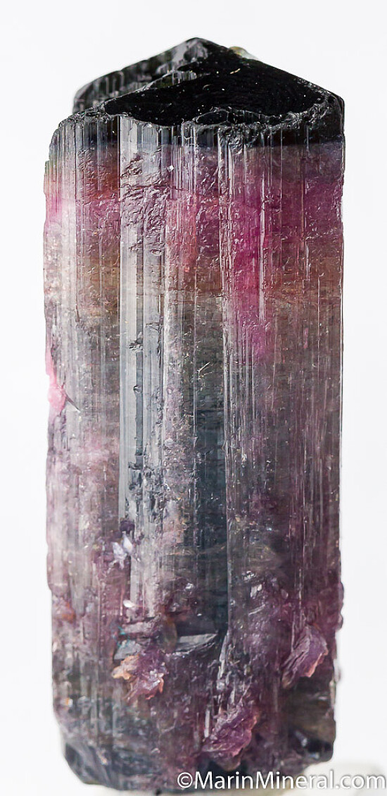 Translucent to transparent blue Tourmaline that grades up to a red termination. Complete all around and weighs 25.9 grams. The termination faces are smooth and lustrous while the prism faces are striated. I was just at the Tucsons how and saw Brazilians selling good Tourmaline for $50-$150 gram, which would make this a $1300 crystal even at the low end of that price scale. This is an old crystal out of an old collection built in the 1970s-80s and this color combo is uncommon to find now.