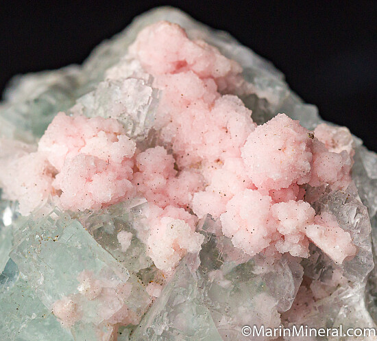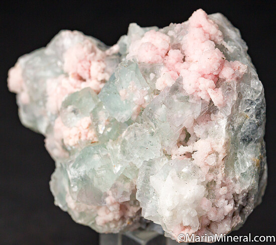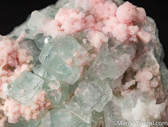 Pale blueish green Fluorite crystals with pink Rhodochrosite from a classic Colorado locality, on a Quartz and sulfide rich matrix.