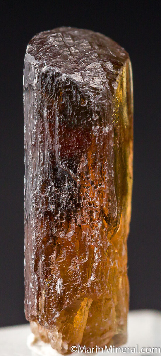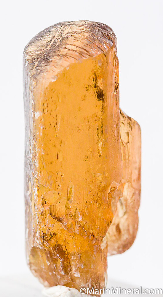 Gem quality, terminated Enstatite crystal from the Morogoro region of Tanzania. Transparent light brown with typical light etching. Enstatite is rare as a gem quality crystal.