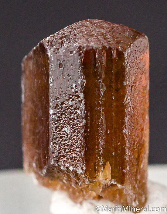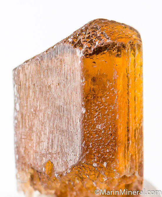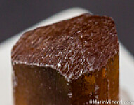 Gem quality, terminated Enstatite crystal from the Morogoro region of Tanzania. Transparent light brown with typical light etching. Enstatite is rare as a gem quality crystal.