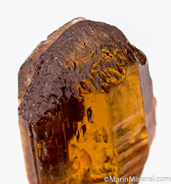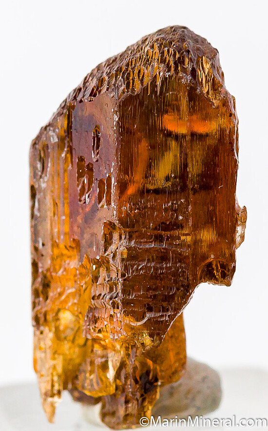 Terminated single Enstatite crystal with medium rootbeer brown color and typical light etching. Gem quality Enstatite is uncommon and specimens are hard to come by. This crystal came from a gem dealer who saved it from gem rough. Great transparency!