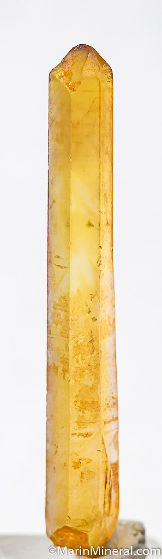 Long, slender Citrine crystal from the Congo. Chipping on one termination face otherwise good all around and transparent.