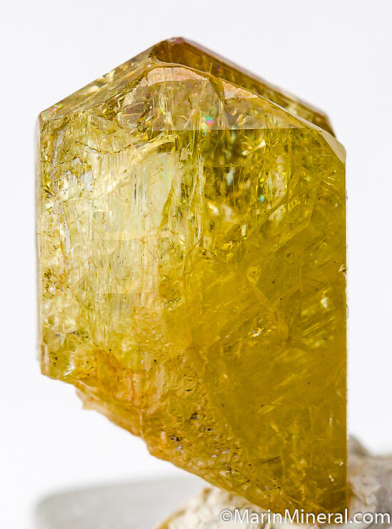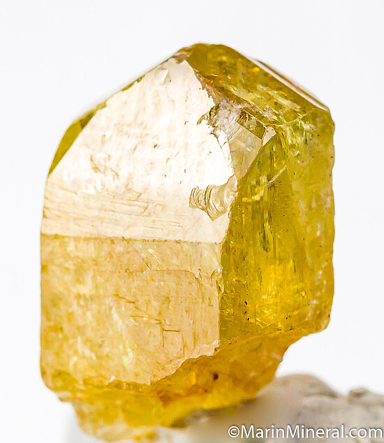 Single yellow Tanzanite (Zoisite) crystal with rich yellow color. Nearly perfect with a great termination and just one contact along a back edge. Glassy with transparent gem zones. Weighs 12 carats.