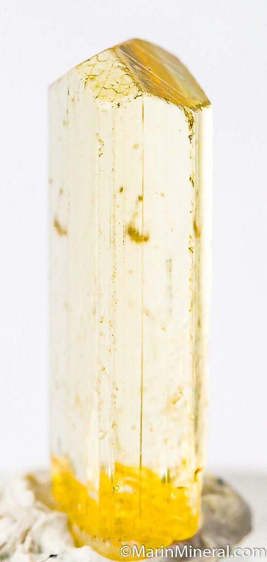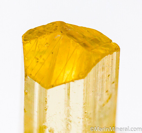 Single yellow Scapolite crystal with good yellow color. An absolute GEM of a crystal, perfect with a great termination and transparent top to bottom. So clear it was hard to photo, but this is a real beauty in person.