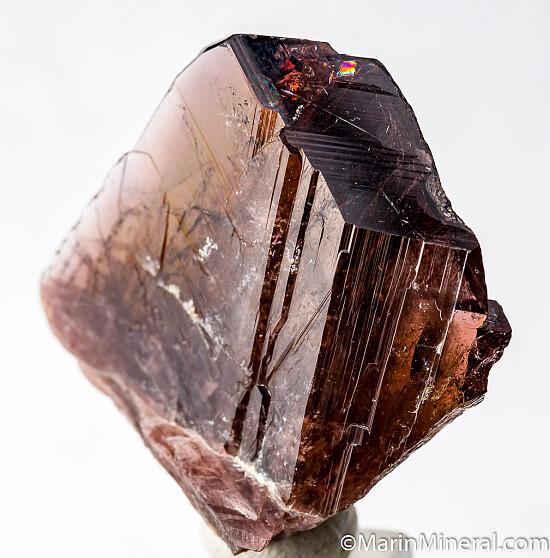 Large, gemmy single Axinite crystal with medium purple color. Sharp and glassy on both sides. Slight edge chipping otherwise undamaged.