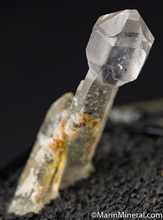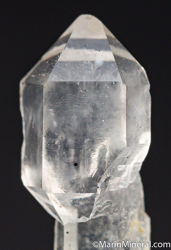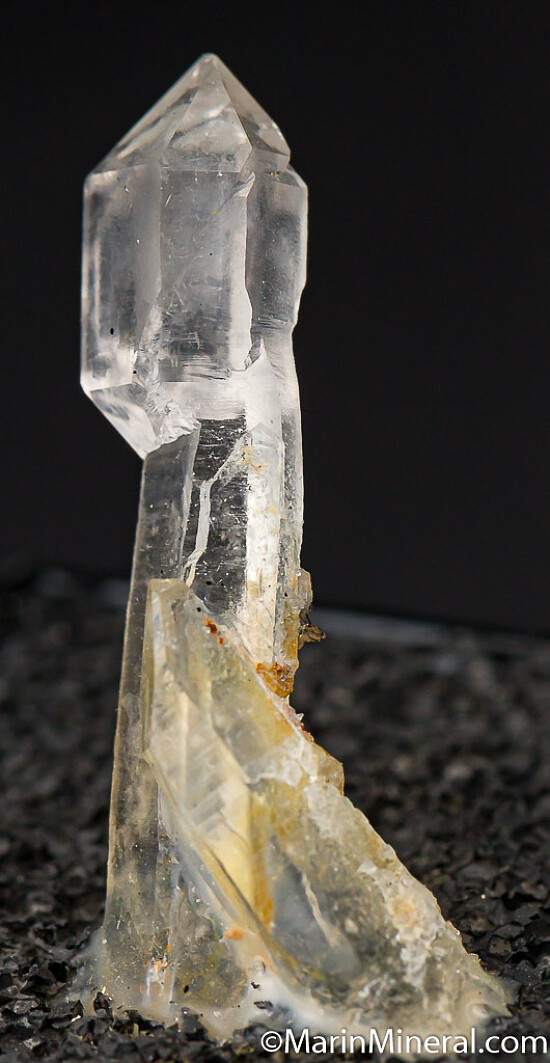 Perfect Quartz scepter with smaller attached crystal. This is old and hasn't been cleaned, and should be remounted more vertical, but it's an excellent undamaged piece. Very transparent with a uniform scepter head. Way better than photos. Out of an old collection built in the 1970s-80s.