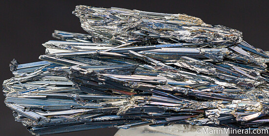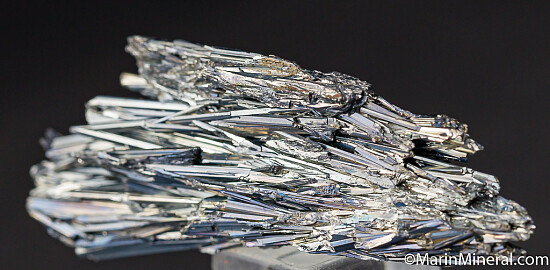 An aesthetic cluster of bright silvery Stibnite crystals from the famous Baia Sprie mine. A mass of solid crystals without matrix. The luster is bright and metallic. Old classic specimen from a 1980s era collection, far less common than the more recent Chinese Stibnite.
