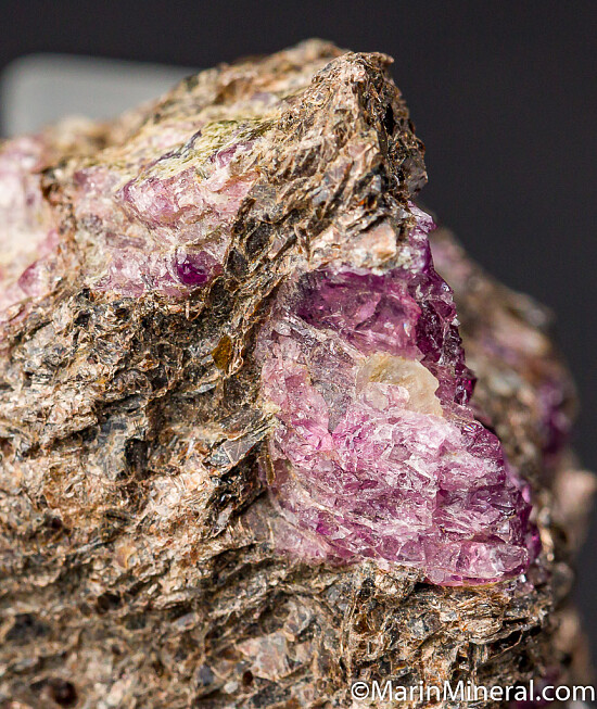 Purple/red Rhodolite crystals in schist. From an old collection, the old label refers to this as a 'rare' specimen.