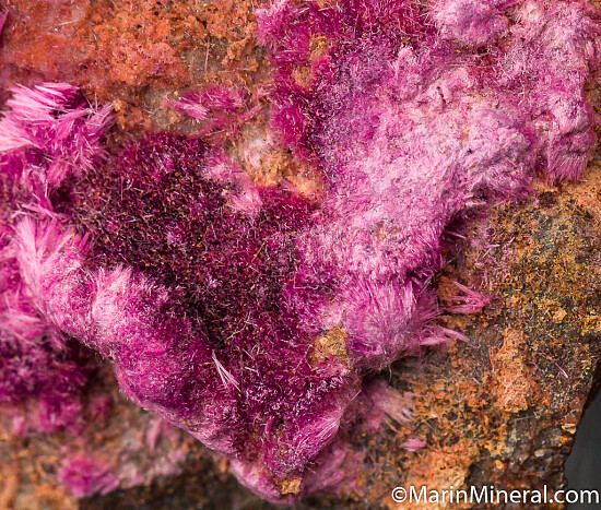 Acicular clusters of purple/pink Erythrite crystals on matrix. An excellent Mexican Erythrite with lots of good crystals. Out of an old collection built in the 1970s-80s.