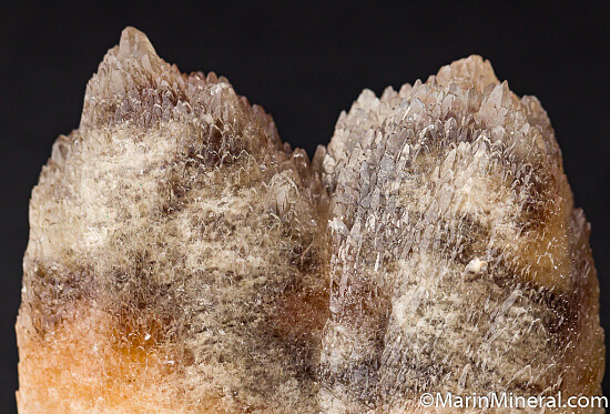 Two large translucent, amber-colored Calcite crystals, each covered by glittering stepped crystal faces. Undamaged.
