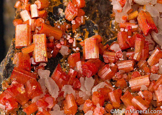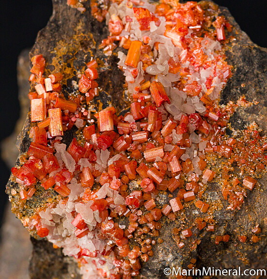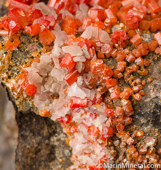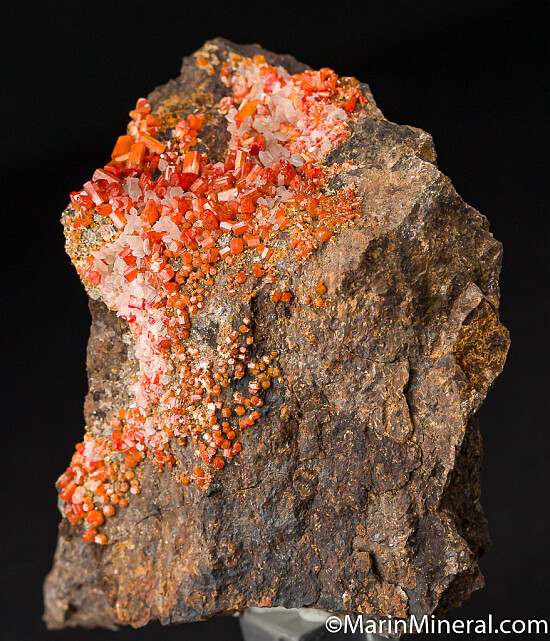Orange/red Vanadinite crystals to 5mm. Ex Dave Shannon collection. Good sized specimen from this classic Arizona locality. Valued at $200.