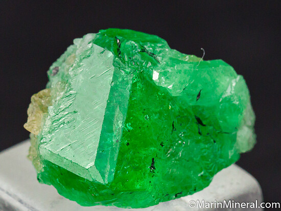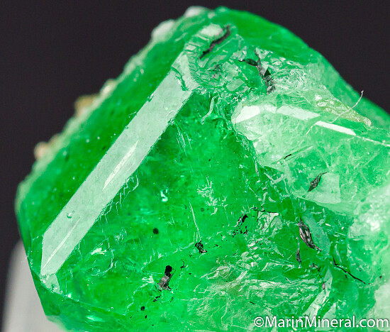 Tsavorite is a chrome and vanadium rich variety of Grossular from East Africa and is one of the most valuable types of garnet found anywhere. This crystal was found at the Merelani Tanzanite mines and has good glassy luster, top vivid green color, and gemmy transparent zones.