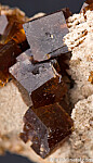 Transparent brown cubes of Fluorite on matrix. Highly Fluorescent. Rare older specimen from the 1970s.