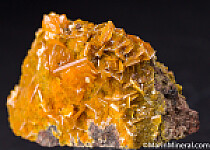 Wulfenite crystals over tiny yellow spherical masses of Mimetite. Crystals on both side of specimen with Wulfenite crystalst to 1.3cm on edge. There are a few broken crystals but most are good. Old specimen from an old Gold mine dating back to the 1800s that is more famous for Wulfenite than Gold.
