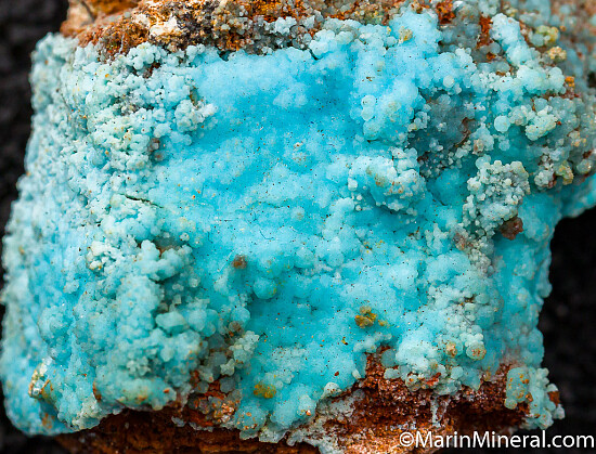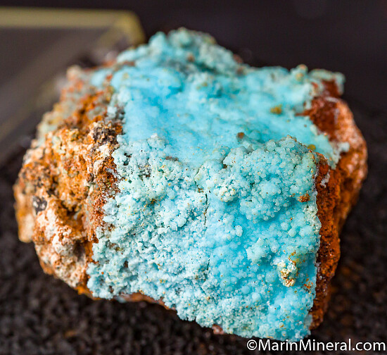 Bright Robin's egg blue Chalcoalumite covering matrix. These specimens are very hard to come by now as the locality is now part of a national park. This old copper mine began operation in 1892, stopped operation around 1907, and became a part of the national park in 1940. The specimen is likely over 100 years old! From an old collection and comes mounted in a plastic box.