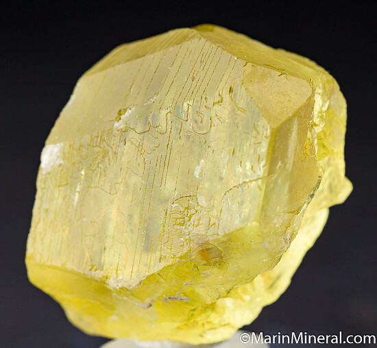 Feldspar is a mineral not ususally known for fine collector gem crystals, but at this locality in Madagascar, amazing water clear crystals are sometimes found. This is a thick, gemmy crystal in good condition, with a cleaved faces on one side and a chip on the top termination. The crystal is well terminated and is also partially terminated on the bottom. The crystal has a good yellow coloration and is internally transparent. It's not perfect but it's large and impressive. Weighs 55.5 grams.