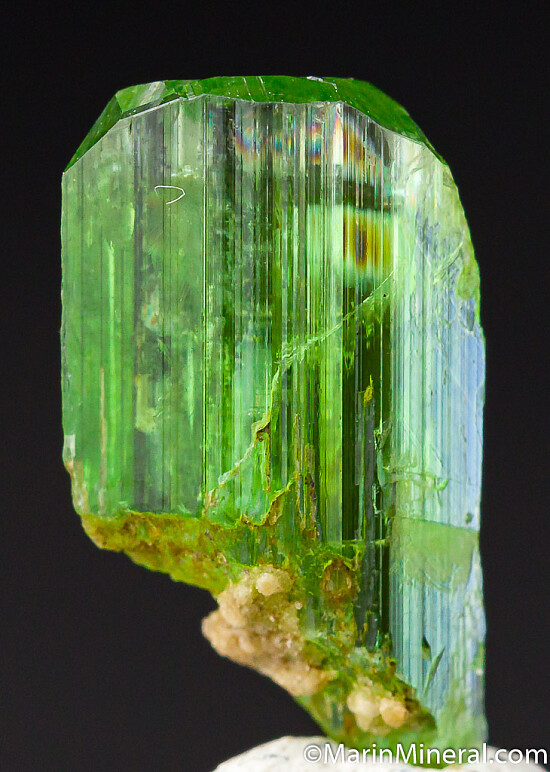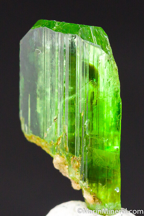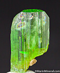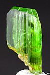 Vivid green Tremolite crystal from the Merelani Tanzanite mines. Complete all around and well terminatedd (most are unterminated shards). Like many other minerals from Merelani, the Tremolite found here is considered the best in the world. Glassy and undamaged.