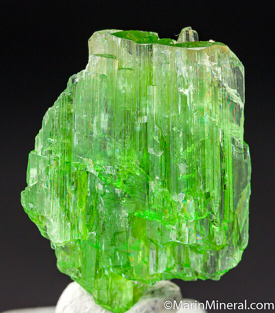 Terminated single Tremolite crystal with bright, vivid green coloration. Translucent to transparent, complete all around, with a flat, glassy termination. Most are mere shards or fragments and complete terminated crystals such as this are are much less common. Like a number of other mineral species from Merelani, these Tremolites are considered the world's best of species.