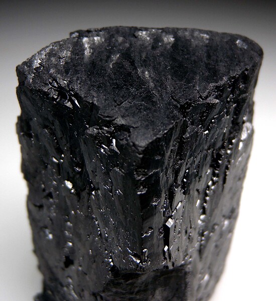 A large chunky, glossy black Ilvaite crystal from recent finds in Inner Mongolia. This is a heavy crystal with a typical chisel shaped termination and a natural indentation from another crystal on the backside. Undamaged and complete all around with the exception of edge chipping on the lower part of one edge. Ilvaite is a heavy iron and calcium silicate mineral and this crystal weighs a hefty 147 grams.