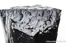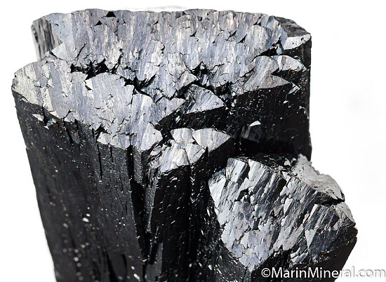 Cluster of thick, glossy black Ilvaite crystals with wide chisel-shaped terminations. Complete all around.