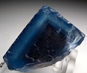 Intensely colored blue Fluorite crystal from the La Barre Mine. The color is a pleasing deep blue, just what you would want in Fluorite, with lots of well defined phantoms. There is some edge wear but it's in good condition overall, and highly transparent. I think it looks nicer in person than the photos as you can see the depth and range of colors better. Comes with a custom Lucite base.
