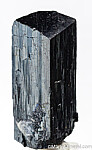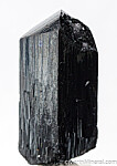 Thick, glossy single black Ilvaite crystal with typical chisel-shaped termination. There is a small area of Quartz in one termination face that has caused an indentation in the face. I'm not sure if it natural growth or damage as the Quartz itself is fully crystallized. Complete all around. Good large, thick crystal.