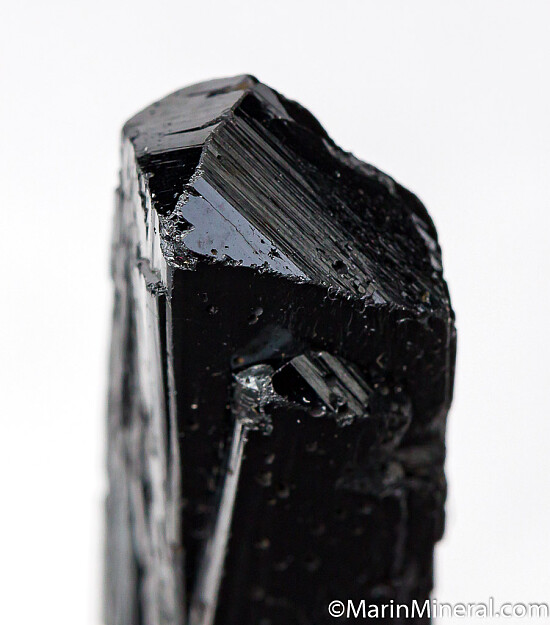 Glossy black Ilvaite crystal with an undamaged, chisel-tipped termination. Complete all around.