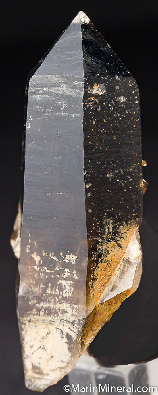 Good sized smokey Quartz crystal from a hard to find locality that was active in the 1980s and most famous for its purple Creedite and specimens of Fluorite, Apatite, and Bertrandite. Undamaged and partially rehealed on the bottom.