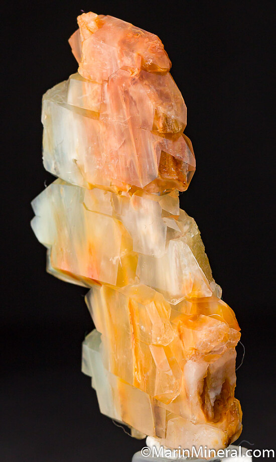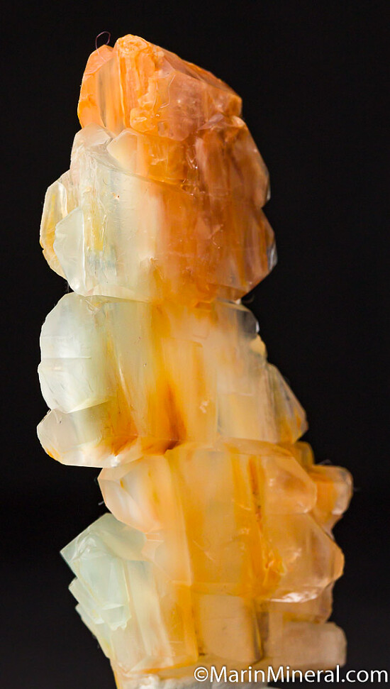 Cluster of faden Quartz crystals with linear peach and green colored inclusions. The inclusions give a silky, almost cat's-eye appearance to the Quartz. Undamaged and crystallized all around with a point of contact on the bottom. Really unusual Quartz crystal unlike any I've seen before.