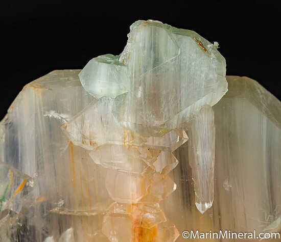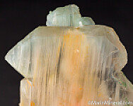Cluster of faden Quartz crystals with linear peach and green colored inclusions. The inclusions give a silky, almost cat's-eye appearance to the Quartz. Undamaged and crystallized all around, a floater. Really unusual Quartz crystal unlike any I've seen before.