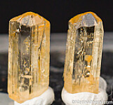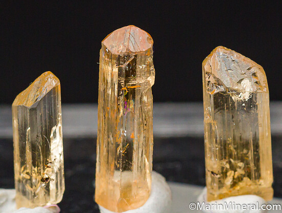 Five crystals of Imperial Topaz from the classic locality. Though small, each crystal is glassy and complete with a perfect termination.