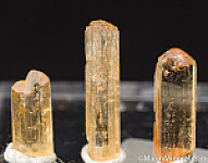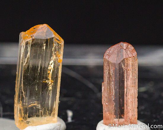 Five crystals of Imperial Topaz from the classic locality. Though small, each crystal is glassy and complete with a perfect termination.