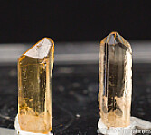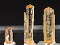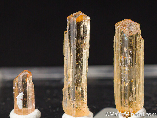 Five crystals of Imperial Topaz from the classic locality. Though small, each crystal is glassy and complete with a perfect termination.