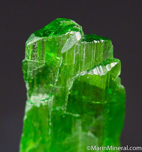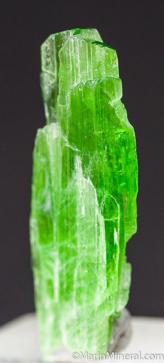 Terminated single Tremolite crystal with bright, vivid green coloration. Translucent to transparent, complete all around, with flat, glassy termination faces. Most are mere shards or fragments and complete terminated crystals such as this are are much less common. Like a number of other mineral species from Merelani, these Tremolites are considered the world's best of species.