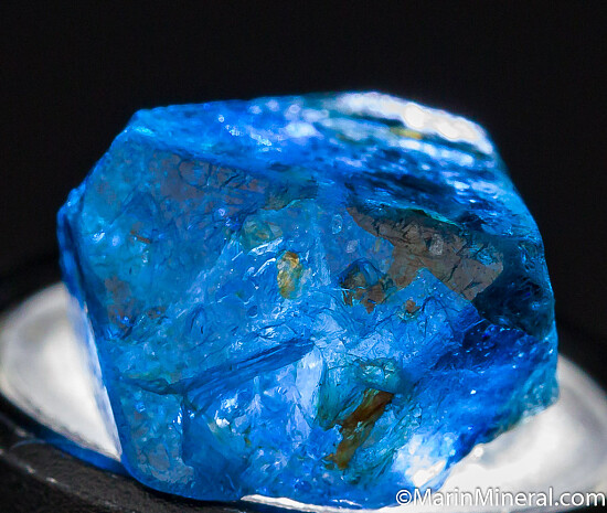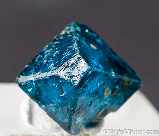 Transparent blue Gahnite crystal, the zinc rich end member and one of the rarer species in the Spinel group of minerals. A mostly complete octahedron with a slight chip on the tips of 2 corners. Translucent to transparent crystal, a good sized, sharply formed example for the find. These were first discovered in 2001 and are found mostly of industrial quality. Though they don't get very large, the color is spectacular. The GIA has written a nice article about these crystals published in Gems & Gemology, Fall 2019, Vol. 55, No. 3.