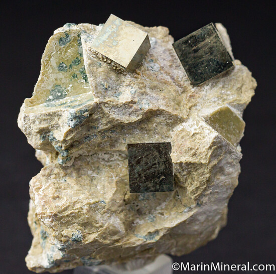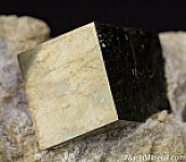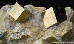 One of the most mesmerizing and shockingly perfect of all mineral specimens, the isolated cubes of Pyrite from Navajun are almost unbelievable. They are so perfect that non-mineral collectors often can't believe they are real and seasoned collectors still marvel at their beauty and uniqueness - no other locality produces Pyrite like these. This specimen features 3 golden metallic crystals to 1.8cm in matrix.