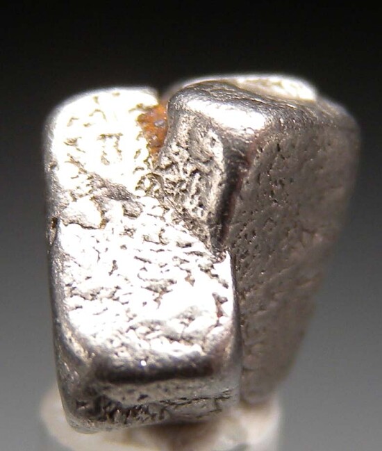 Intergrown cubic platinum crystals from the famous and now closed Konder platinum deposit. Composed of 2 intergrown crystals with good form. Single cubes are the norm and these intergrown clusters have more appeal. These are no longer being found. Weighs 1.91 grams.