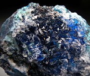 Deep blue crystals of Quartz included with Shattuckite on a matrix with Shattuckite and lighter blue Chrysocolla. Good crystals on the backside too.