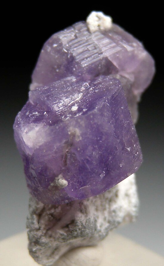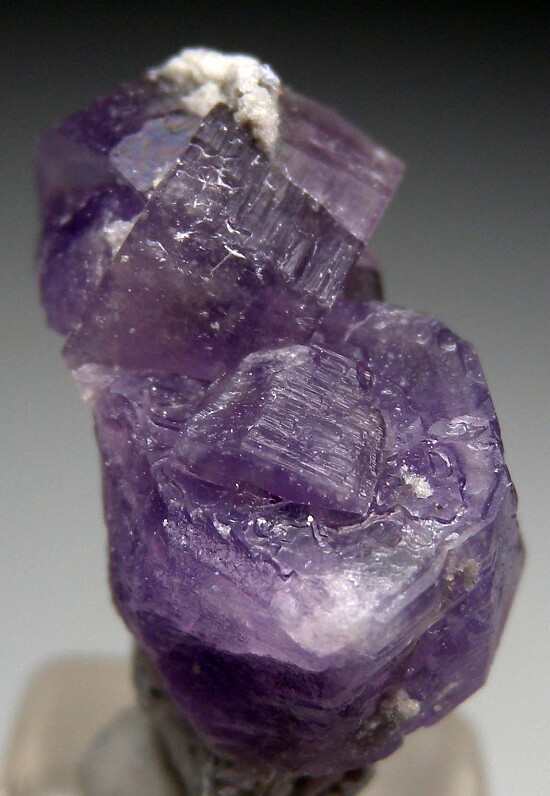 Cluster of well formed purple Coquimbite crystals on matrix from recent finds at the Monte Arsiccio Mine in Italy. The Monte Arisiccio Mine is an old iron mine that worked Barite, Pyrite, and iron oxide ore bodies. Along with other uncommon sulfate minerals, this mine has produced what are in my opinion the world's best Coquimbite specimens. This specimen has Coquimbite crystals to 1.1cm in size that dispaly well atop a small amount of matrix. These specimens should be kept sealed in plastic bags or boxes or otherwise be kept from high humidity or moisture.